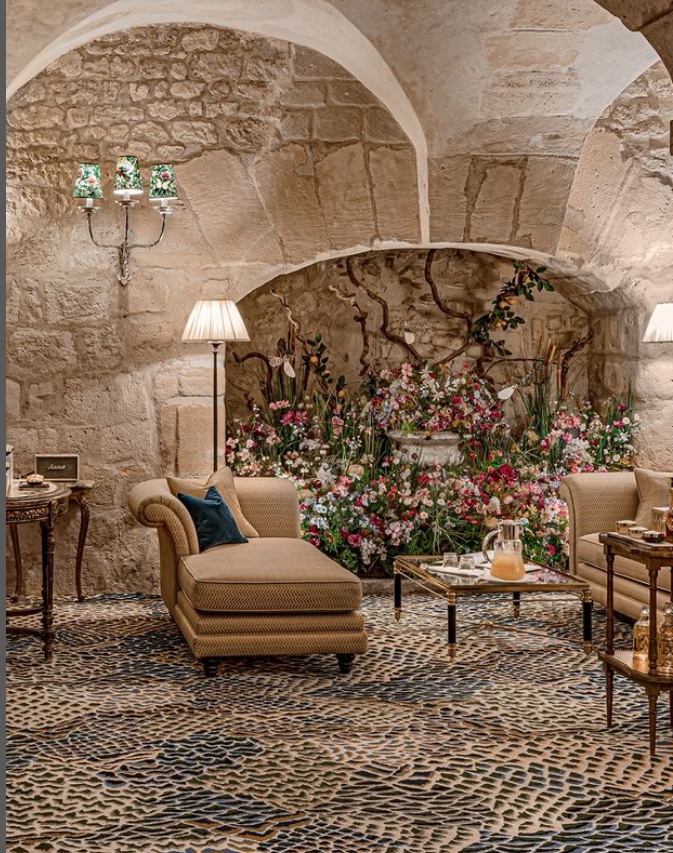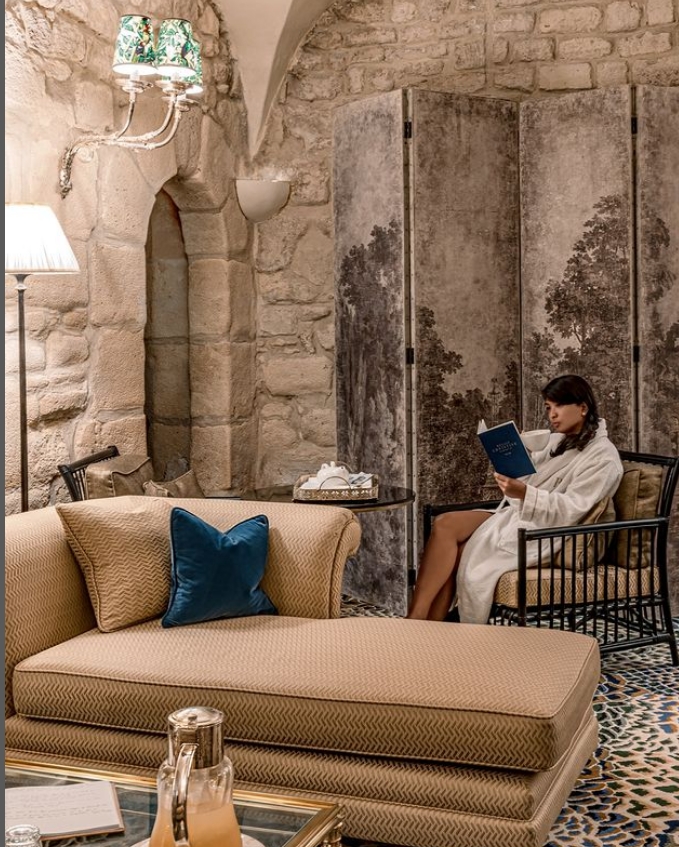 Housed in a former 13th-century abbey, Relais Christine retains its historic roots while exuding modern luxury. This architectural gem has been reimagined under the creative direction of Laura Gonzalez, known for her ability to mix styles, textures, and eras seamlessly. Her work breathes new life into the property, creating spaces that feel both timeless and fresh.