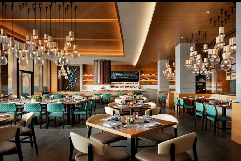 First stop, Elements Lounge – where earth, air, fire, and water aren’t just elements; they’re part of the decor brief. Think flickering fire pits, water features that ripple just enough to feel intentional, and an outdoor space that somehow manages to feel both grand and intimate. The cocktails are as photogenic as they are potent (yes, that’s a thing), and the vibe? Effortlessly cool. You could show up in a linen suit or post-beach casual, and it’d still feel right.