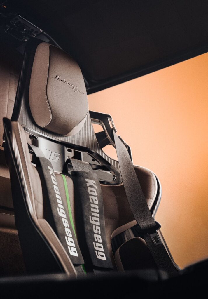 Inside, the car is bare where it should be, rich where it matters. Minimalism isn’t a style here, it’s a necessity. The standard seats are replaced with new, lightweight carbon racing shells. The center console is simplified, and sound insulation is reduced. And yet, the essential Koenigsegg DNA remains: the SmartCluster rotating display, SmartCenter touchscreen, and even parking assist and phone charging.