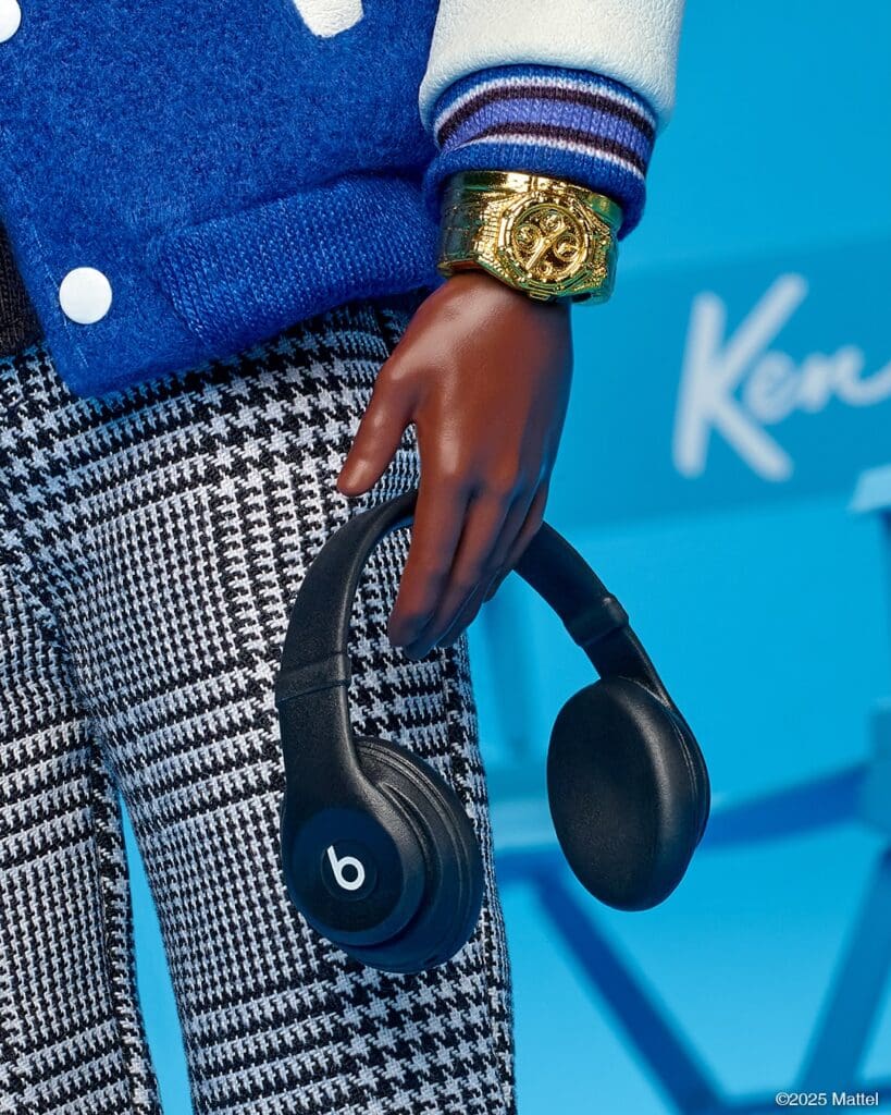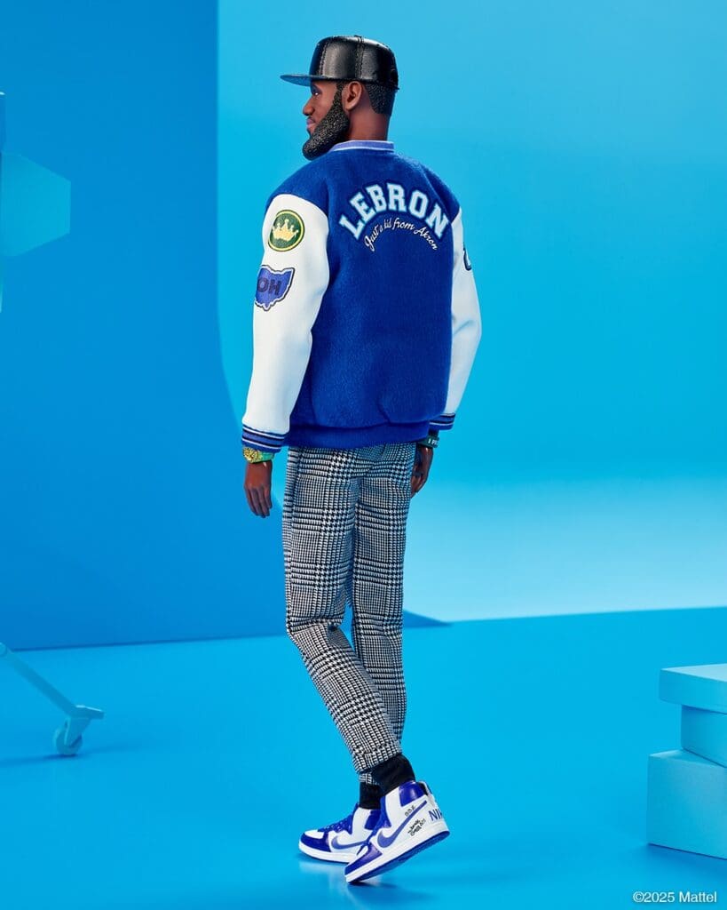 This limited-edition doll isn’t just about style (though it has plenty); it’s a tribute to LeBron’s wide-reaching impact on culture, fashion, leadership, and community-building. Dressed in a blue-and-white varsity jacket emblazoned with his initials “LJ” and his name in bold on the back, the LeBron Ken doll is rich with symbolic detail. Patches on the jacket feature nods to his iconic jersey number 23, his Ohio roots, and the phrase “We Are Family,” a meaningful reference to the LeBron James Family Foundation.