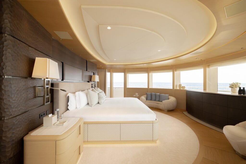 The experience is obvious the moment you picture the day. Touch down by helicopter with the rotors easing to a hush, transfer inside within steps, then move to the pool where the only sound is water running over the edge. Interiors are designed for space and flow rather than stunts. Private terraces off the VIPs change the morning routine from a corridor to a breath of salt air. The beach club’s shell doors connect guests directly to the sea, which laps quietly at the platform. It is the kind of arrangement that reduces the choreography of large-yacht life.