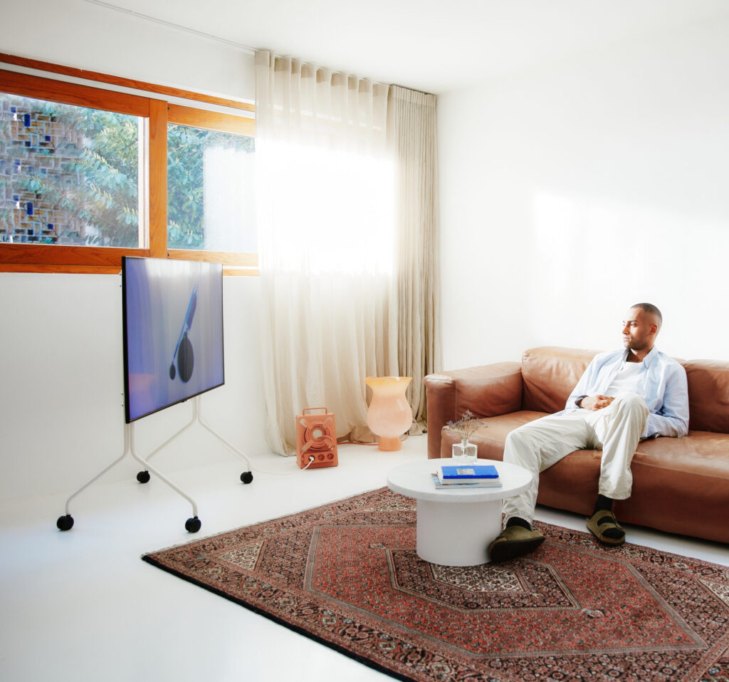 ” If you’ve ever wanted a TV in a room, an office space, or a corner without a suitable wall or shelf, or if you simply want the freedom to adjust your TV’s angle as needed, Pedestal’s stands offer an elegant and modern solution. The Moon Rollin’ lets you position your TV wherever you want it while keeping your space refined and stylish. “