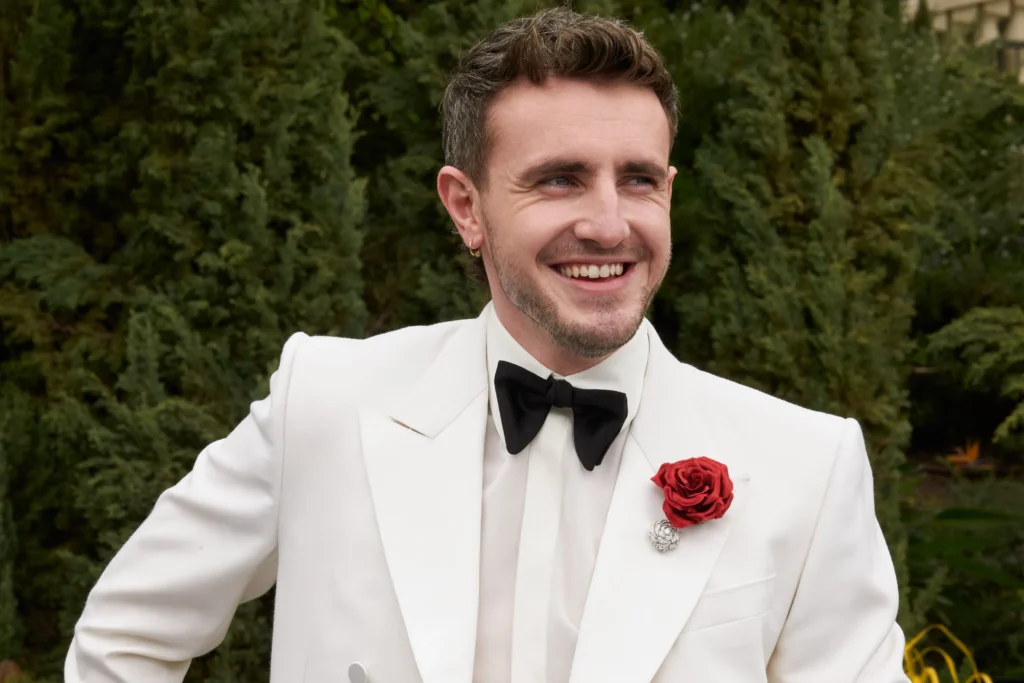 Paul Mescal’s look at the Oscars nodded to old-school Hollywood glamour with a twist. Wearing a white tuxedo jacket by Louis Vuitton, he paired the classic piece with a black bow tie and high-waisted trousers. The ensemble struck the perfect balance between timeless and contemporary.