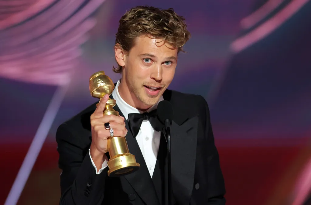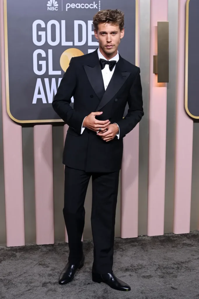 Austin Butler’s sleek Saint Laurent look at the Golden Globes epitomized understated elegance. His all-black ensemble, featuring a velvet jacket and slim trousers, exuded confidence and sophistication without the need for bold embellishments.