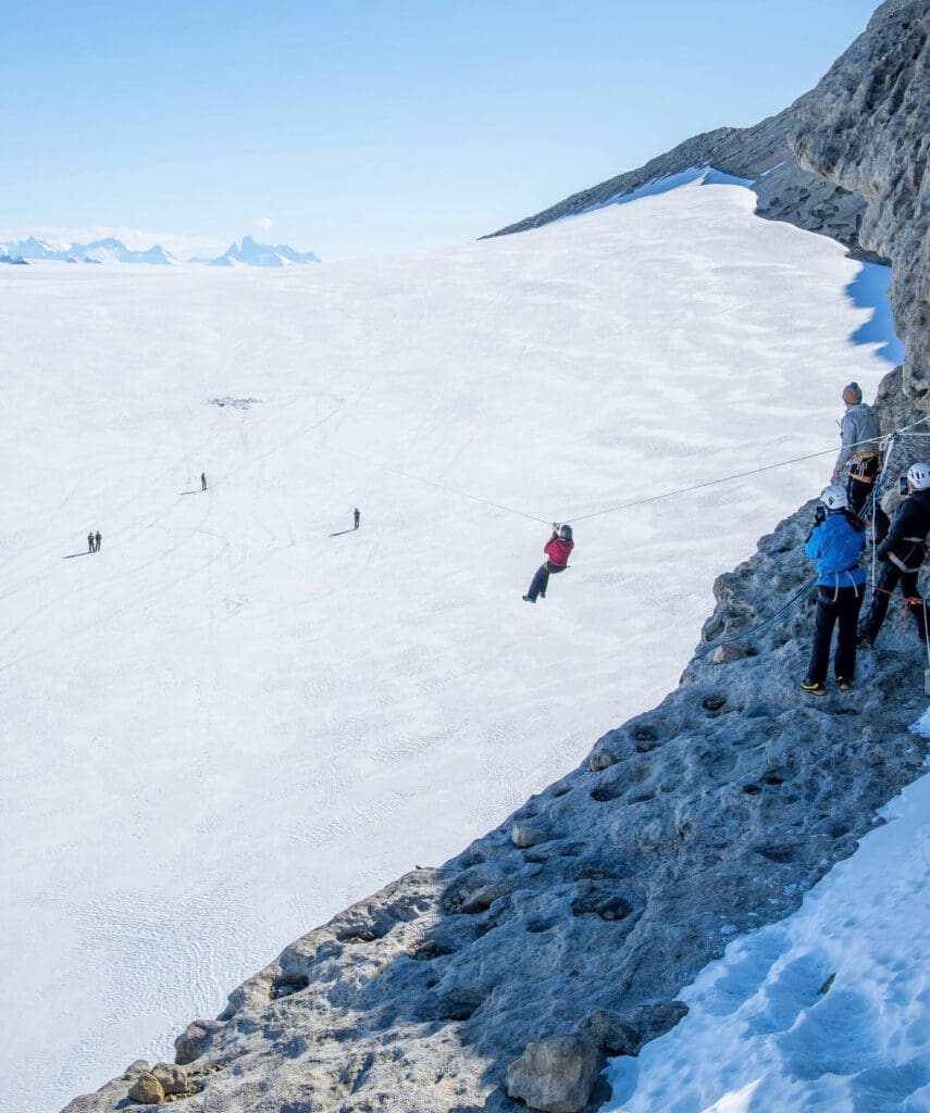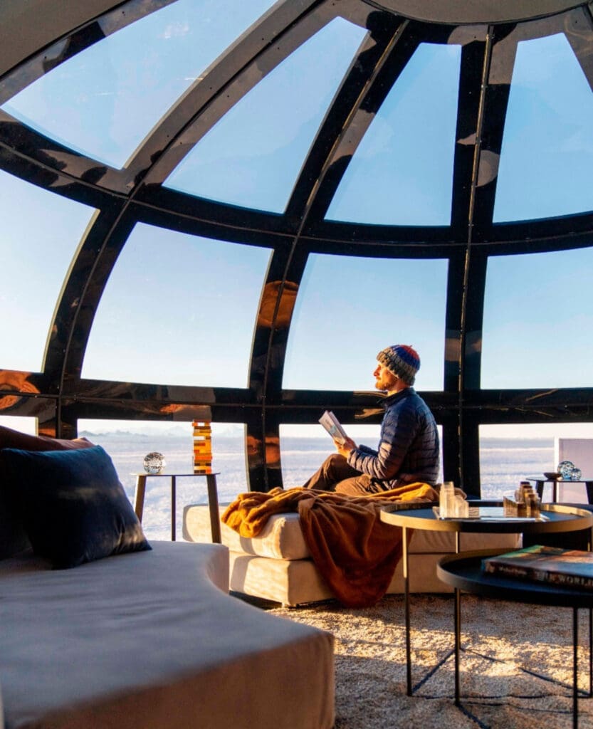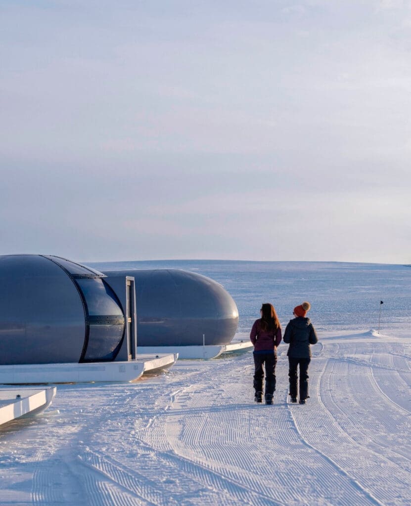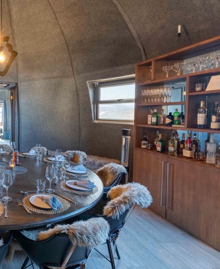 White Desert’s premier accommodations, such as the Whichaway and Echo Camps, offer eco-friendly luxury in one of the harshest environments on Earth. These camps feature chic, insulated sleeping pods, gourmet dining by a private chef, and cozy lounge spaces for relaxation. Guests are treated to daily tailored excursions, from scaling ice cliffs and hiking through surreal ice tunnels to enjoying a champagne picnic atop rugged peaks